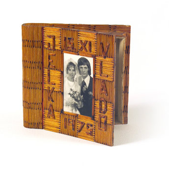 Box made of matches, Slovenia, 1973-2000. “A box – Jelka, Vlado, November 15, 1975. Vlado made it after the wedding, when he was in the army. After 18 years of marriage he left me for another woman; we officially divorced after our 25th wedding anniversary…”