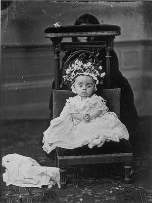 52. I was wondering if in fact it was the mothers that were deceased – not in the sense that there are dead mothers holding the children but that a ‘mother’ figure was needed to hold the child up to keep them steady and take the photograph – could this be possible? A lot of the children in these pics seem life like – really to hard to imagine how they could have got this on a deceased child!