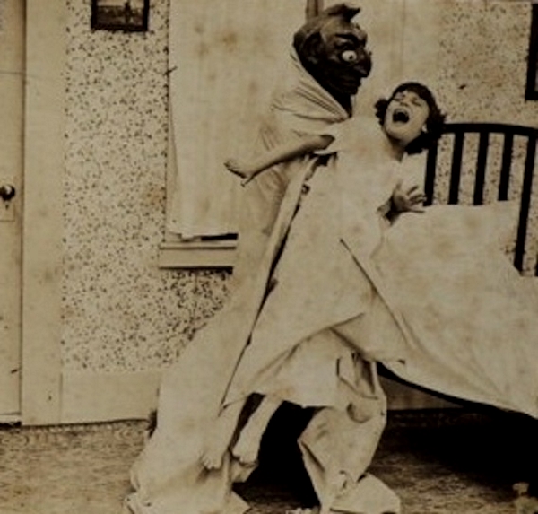 These chilling images come from a series of photographs entitled “The Goblins Will Get You If You Don’t Watch Out”, and were made sometime around 1923-1934. They tell a nightmarish tale of a little girl being abducted by horrible creatures of the night.
