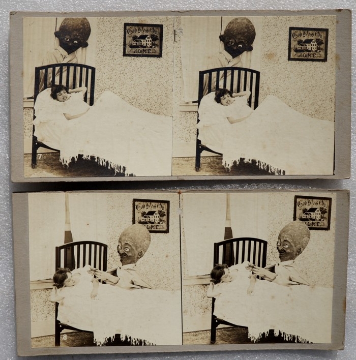 The images are weird enough as is, but the series originally came as a set of stereoscopic photographs, designed to be seen in three dimensions (see below). Can you imagine looking at these as a kid in the 1920s, and seeing the weird creatures and the girl’s terrified expression popping out at you?