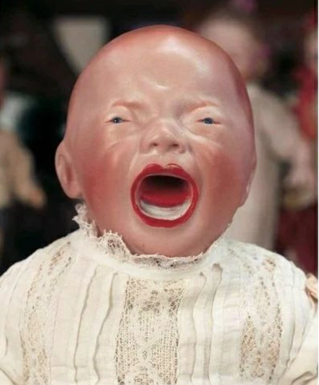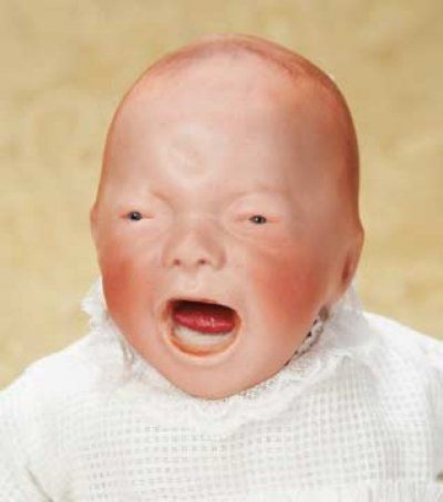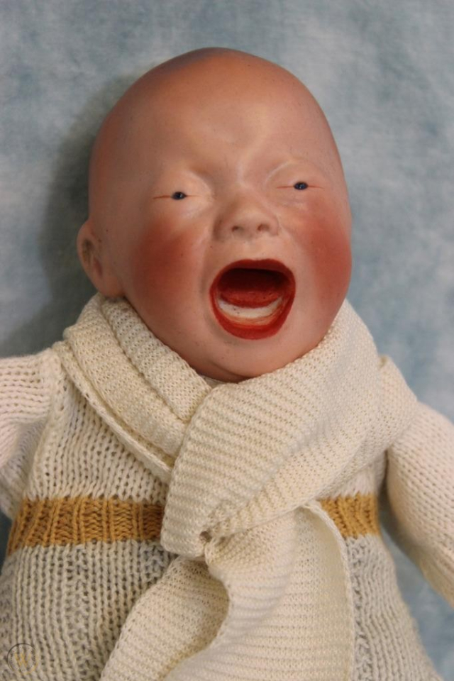 Screaming baby dolls made from bisque porcelain by German dollmaker Kestner around 1920. This doll gives me such a visceral stress response.